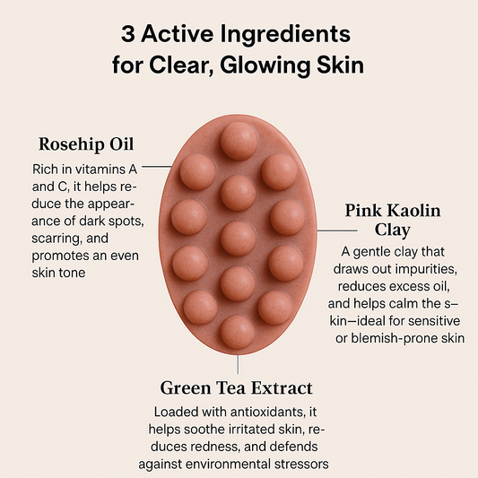 Rosehip and Pink Clay Acne Beauty Cleansing Bar – Brightening, Calming, Dark Spot Correcting for Glowing Skin