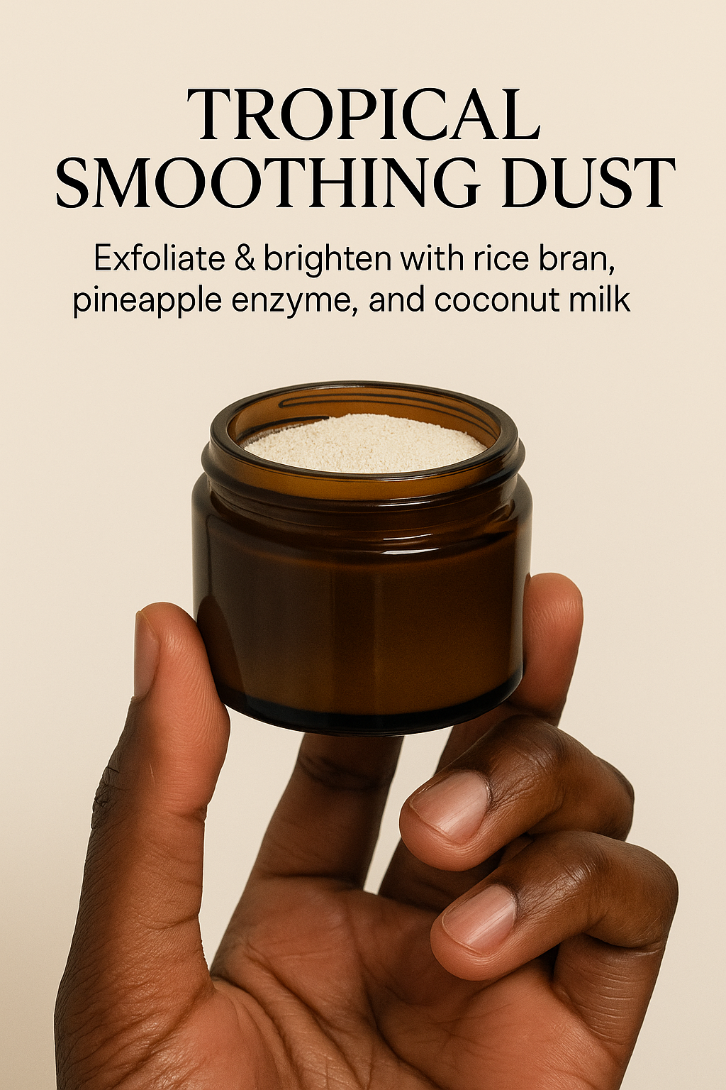 Reveal brighter, smoother skin with Tropical Smoothing Dust. A gentle exfoliating powder designed to support glow, texture, and skin clarity. This water-activated botanical formula combines rice bran, bamboo powder, amla berry, and pineapple enzyme to gently exfoliate without irritation. Powered by natural fruit enzymes and vitamin C-rich botanicals, it helps fade dullness and refine texture for a soft, radiant complexion.