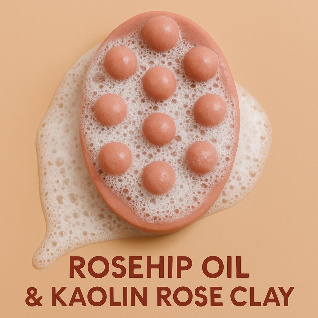 Give your skin that healthy glow with our Rosehip & Pink Clay Acne Soap Bar. Packed with active botanicals, this bar brings together rosehip oil, pink kaolin clay, sea buckhorn seed oil, and green tea extracts to target breakouts, soothe sensitive skin, and brighten dark spots naturally. Ideal for all skin types, this gentle yet effective soap works wonders for acne-prone skin, giving you a smooth, even tone and radiant finish with every wash.